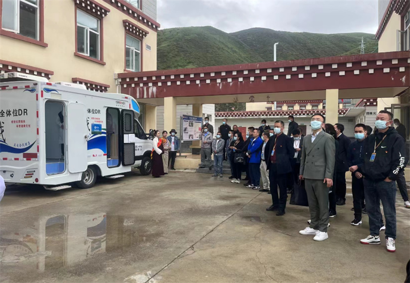 作為現(xiàn)場會其中一個重要環(huán)節(jié),顯浩DR體檢車佇立色達(dá)縣洛若鎮(zhèn)衛(wèi)生院門診大樓旁,迎來與會人員集體參觀交流。