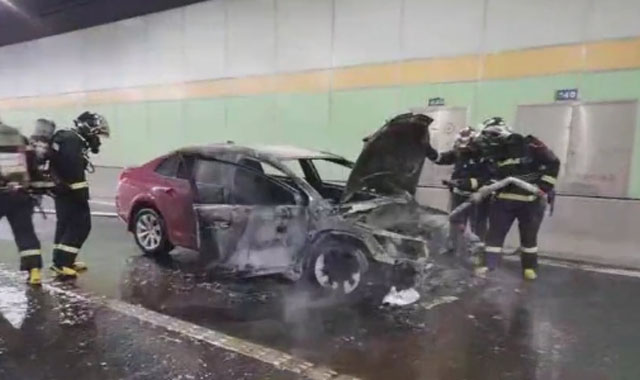 隧道內(nèi)轎車自燃,情況危急!先導(dǎo)處置車攜手消防員逆行救援。天氣炎熱,風(fēng)高物燥。空氣濕度很低,很容易發(fā)生火災(zāi)。這時(shí)突發(fā)緊急情況,隧道的一輛小轎車發(fā)生了火情,自燃了。時(shí)間緊迫先導(dǎo)處置車第一時(shí)間趕到現(xiàn)場進(jìn)行處置。因?yàn)樗淼辣容^狹窄,又是下班的完高峰期。自燃導(dǎo)致了高速車輛大排長龍。消防車比較大開到隧道口就沒辦法往前開了。為了讓消防車盡快到達(dá)現(xiàn)場滅火。先導(dǎo)處置車的人員在指揮交通秩序。搭載消防隊(duì)員進(jìn)隧道滅火。很快現(xiàn)場明火被撲滅,自燃車輛被拖離。經(jīng)多先導(dǎo)處置車部門聯(lián)動(dòng)處置,快速消除車輛燃爆險(xiǎn)情,交通恢復(fù)正常。