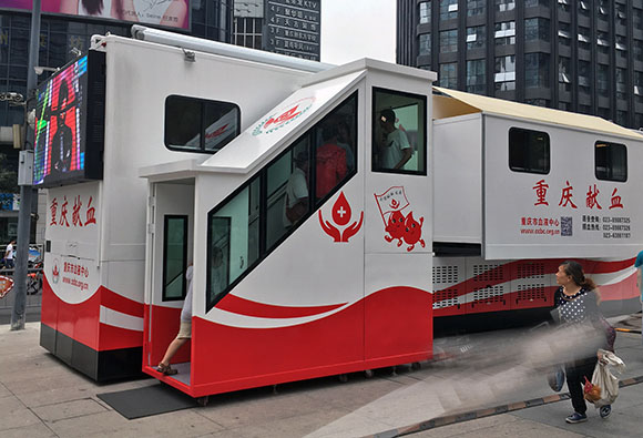 移動(dòng)獻(xiàn)血屋有什么特點(diǎn)呢?它是有輪子的,借助拖掛車牽引過來即可。商店應(yīng)急電源設(shè)備等,以保證機(jī)艙內(nèi)的空調(diào),血液存儲(chǔ)設(shè)備的正常運(yùn)行。還有就是,在獻(xiàn)血屋的前面,有一個(gè)應(yīng)急窗口,遇到一些問題需要取血或緊急情況時(shí)候,可以更加迅速地在這里處取出。這種更加寬敞的移動(dòng)獻(xiàn)血屋,能給獻(xiàn)血者提供更好的獻(xiàn)血服務(wù)。獻(xiàn)血屋有一個(gè)相對獨(dú)立的分區(qū),它也配備了更好的設(shè)施,無線網(wǎng)絡(luò),將提供一個(gè)更舒適的環(huán)境和更好的獻(xiàn)血者獻(xiàn)血經(jīng)歷。