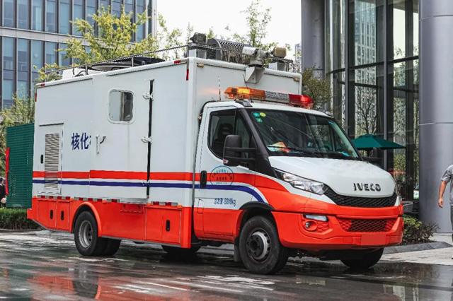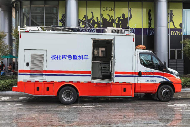 保障車很多種,我們認識的有救護車,軍警車,消防車等跟我們生活相關的應急車輛。民防車也跟我們安全息息相關,也就是核化應急監(jiān)測車。核化應急監(jiān)測車的整車造型非常方正。顏色采用醒目的上面白色下面橙色。中間有灰色的線條來涂裝。外形看是很霸氣結實的。國內比較常見的方式警示燈大多是采用左黃右紅的布置。它是用了長軸距的底盤。搭載了3.0發(fā)動機和8AT的變速箱。最大的負載重量是7噸。總質量是6.6噸。算上物資和人員可以滿足7噸的標準。所以這個底盤車型可以用來改裝通信車,救護車,工程車等比較友好。