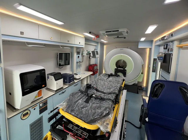 腦卒中70%-80%的腦卒中(腦梗死)由腦血管堵塞引起,導(dǎo)致該血管供應(yīng)腦組織缺血、缺氧壞死或腦軟化。已成為全世界健康的頭號(hào)殺手,是無數(shù)家庭的淚水與無助,是對(duì)社會(huì)醫(yī)療資源的巨大挑戰(zhàn)。腦卒中急性腦血管疾病,分為缺血性卒中和出血性卒中。 救護(hù)車的正確的急救對(duì)于減少卒中致殘致死的發(fā)生至關(guān)重要。腦卒中CT救護(hù)車每一分每一秒都承載著希望與挑戰(zhàn)。配置先進(jìn)的CT設(shè)備,隨時(shí)了解患者體征、檢查數(shù)據(jù)及車內(nèi)實(shí)況,提供即時(shí)醫(yī)療咨詢與緊急處理方案,患者第一時(shí)間上救護(hù)車就可以得到基礎(chǔ)的檢查,確保有病情的評(píng)估與初步的治療。上車即入院,連接醫(yī)院的急救中心,縮短救治時(shí)間。爭取在黃金救援時(shí)間內(nèi)挽救生命。