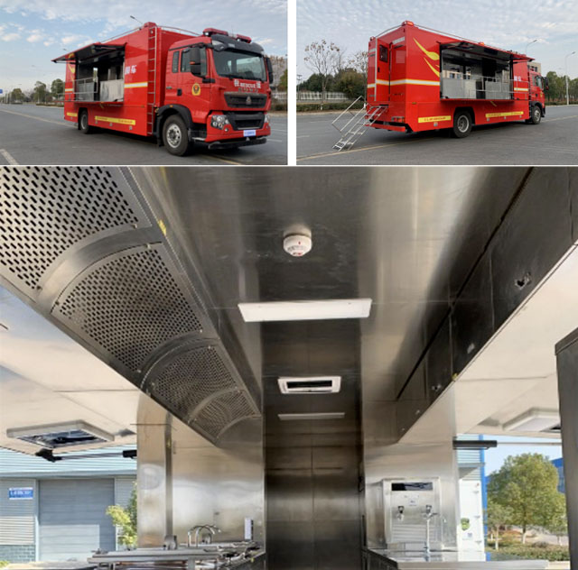 為打造消防后勤保障全生態(tài),后勤保障車主要用于保障救援團(tuán)隊(duì)及受災(zāi)群眾的衣食問題。洗滌保障,可以將衣服洗干凈、烘干、掛燙等服務(wù)。自動(dòng)化程度高。災(zāi)害事故現(xiàn)場(chǎng)為消防員及人民群眾提供衣物清洗。炊事保障為野外執(zhí)勤人員制作、加工飲食的作業(yè)類專用汽車,最高可滿足一小時(shí)為幾百人提供餐食,屬于消防后勤保障類車輛。宿營(yíng)保障主要裝備床鋪等宿營(yíng)設(shè)施。集成休息臥鋪等需要,提升了輸送及宿營(yíng)工作的舒適度。淋浴保障車在在野外執(zhí)行任務(wù)或者邊遠(yuǎn)分散地區(qū)長(zhǎng)期工作時(shí)的洗浴困難的問題,提高部隊(duì)后勤綜合保障能力,是為野外工作人員提供淋浴的作業(yè)類專用汽車。衛(wèi)生車是移動(dòng)廁所,洗手池及污物收集處理等救援時(shí)作為臨時(shí)廁所使用的作業(yè)類專用汽車。照明保障車是大型活動(dòng),夜間的搶險(xiǎn)救災(zāi)是提供照明用途的專用車。