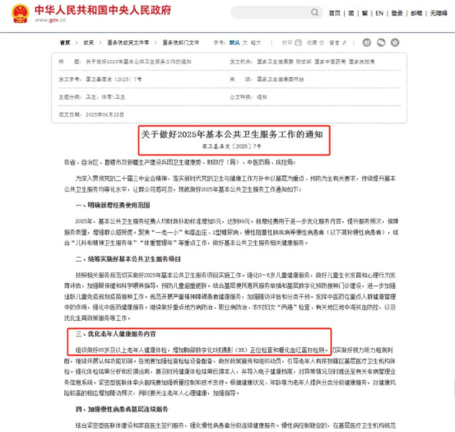 2025年6月,國家衛(wèi)健委、財政部等多部門聯(lián)合印發(fā)《關(guān)于做好2025年基本公共衛(wèi)生服務(wù)工作的通知》,首次將胸部DR正位檢查納入65歲及以上老年人免費健康體檢項目。