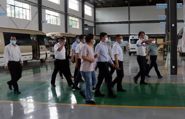 市領導們逐一參觀了正在生產(chǎn)中的醫(yī)療體檢車、救護車、移動核酸檢測車和移動P2實驗室四款車型,我司技術(shù)人員向領導們介紹了不同車型的使用場景和功能。