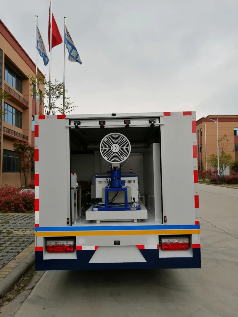 防疫消殺車由汽車底盤改裝,噴霧機組,車廂,罐體,風(fēng)機,供電,等系統(tǒng)等設(shè)備組成。自動化程度高,低水位保護系統(tǒng):各種罐體布局設(shè)計合理,和車廂很好的整合一體化發(fā)揮了空間優(yōu)勢。維護保養(yǎng)簡單超大罐體容量大大延長作業(yè)時間、提高了工作效率。安裝了低水位通知警告系統(tǒng)。水不夠了降低噴灑轉(zhuǎn)速。防止缺水設(shè)備損害。操作簡單一人就可以完成防疫消殺工作。